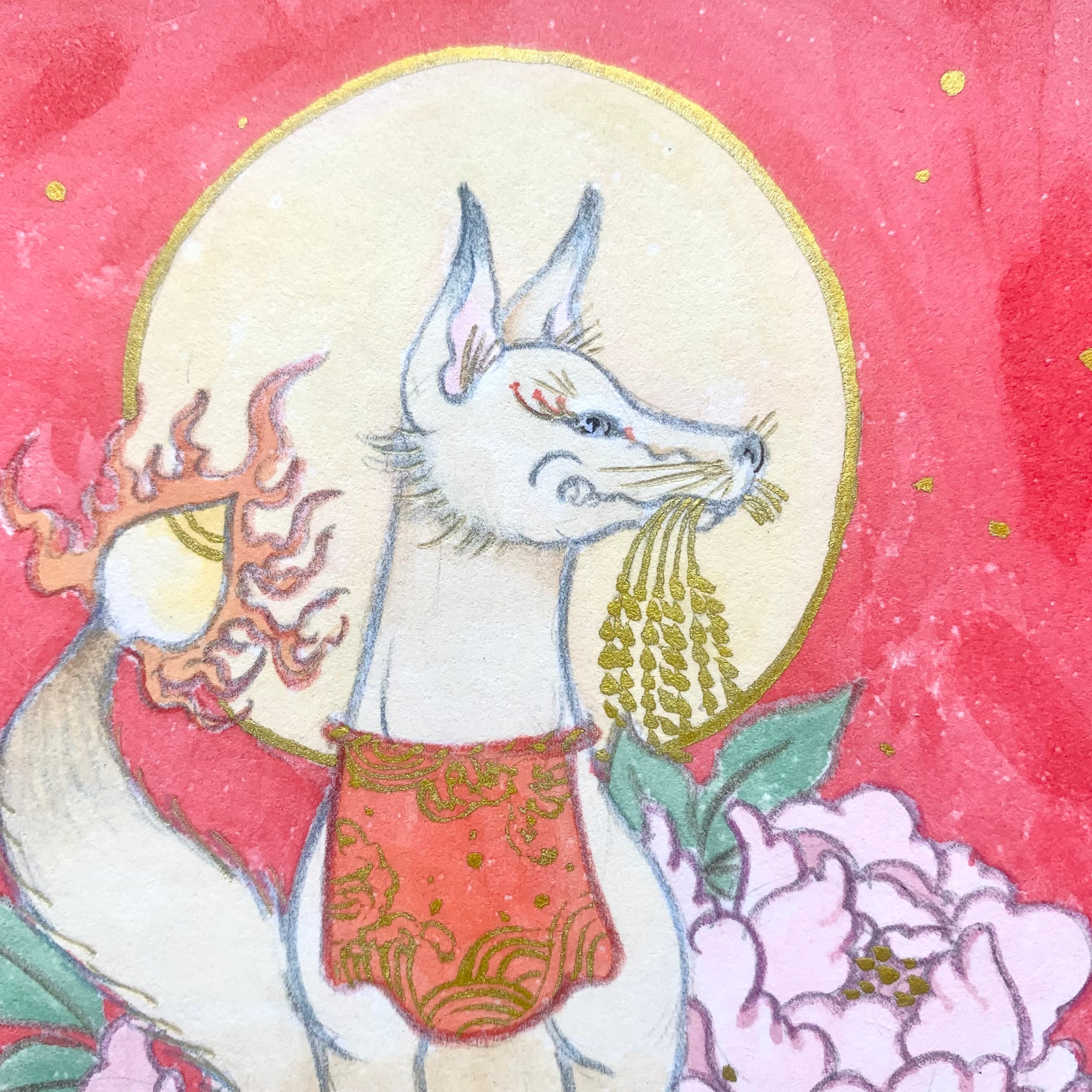 宝珠狐-牡丹- 原画色紙