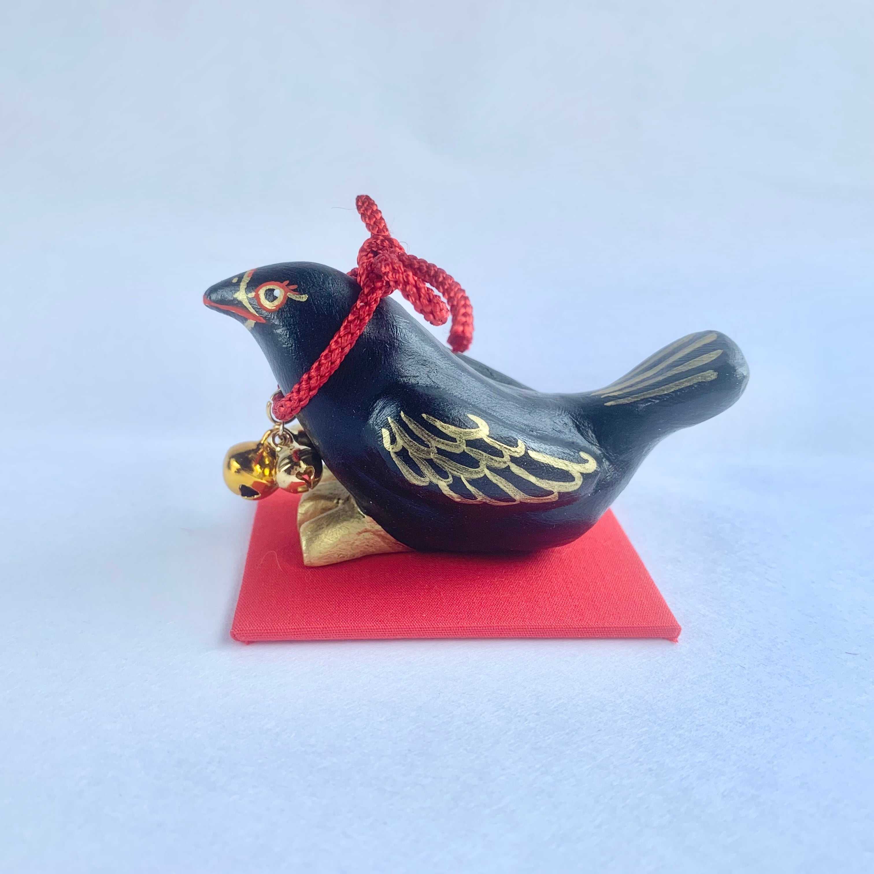 三本の脚は、天地人を表しているのだそうです。太陽を表す陽数でもあるため、鈴の数も三つにいたしました。